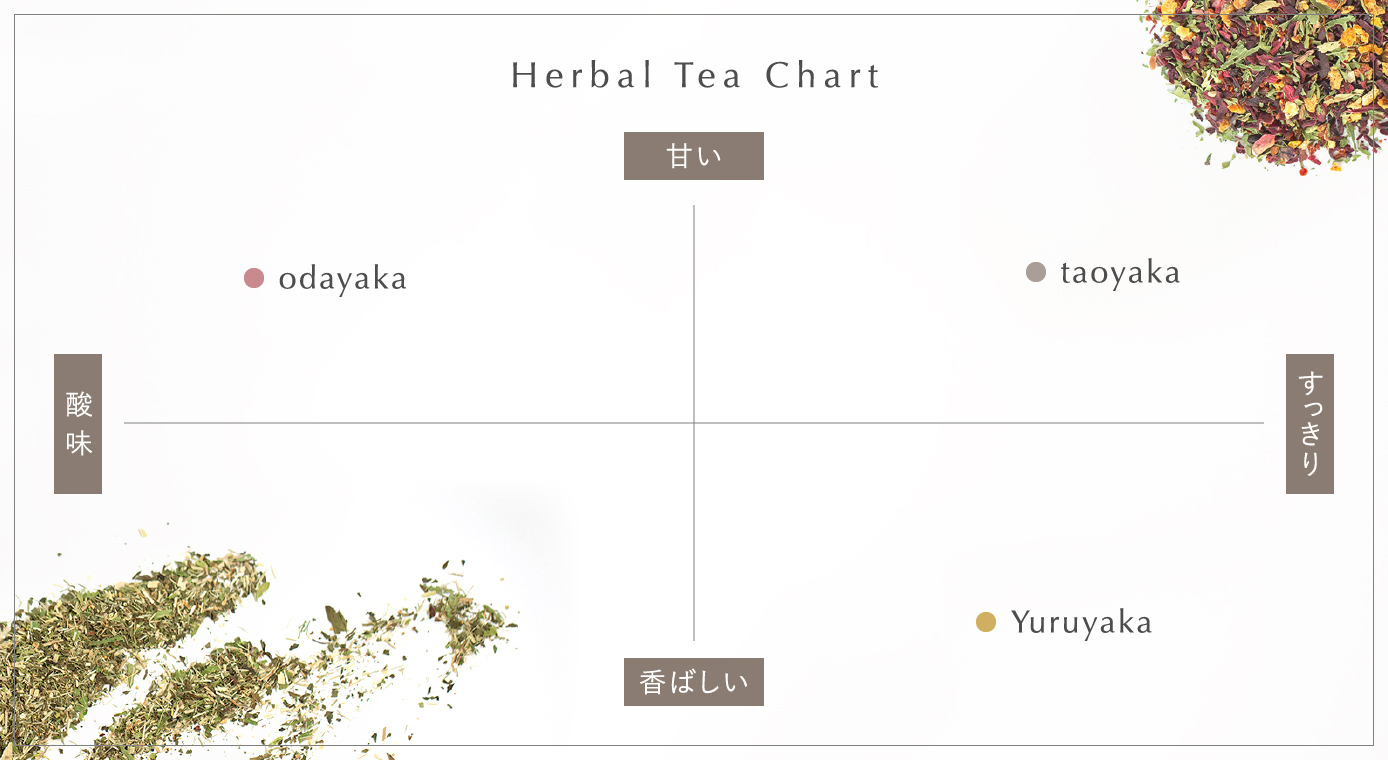 180種類を超える原材料、約50種類のフレーバーから厳選し、これまでに蓄積された多彩なレシピを用いて、ハーブティーの効果効能を生かしたブレンドを完成